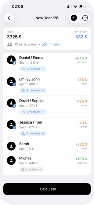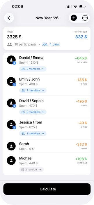 Trips, dinners, roommates, events — Spliqo instantly shows who owes whom.